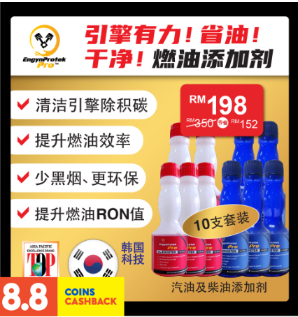 | Booster O2 【EngynProtek Pro O2 Booster 10Btl Petrol Package】10支配套汽油燃油宝 燃油添加剂 韩国配方【KOREA】 引擎更干净,省油,有力 消除积碳 拒绝阻塞 | | RM198.00 | |